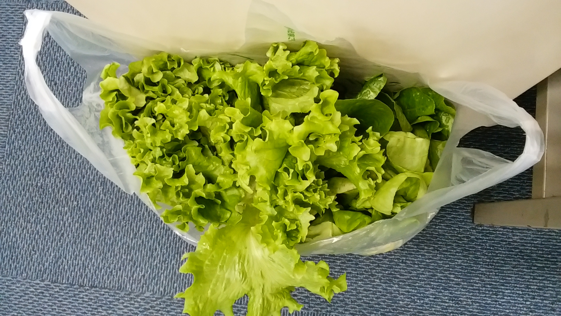 今日は、フリルレタスとロメインレタスとサラダ菜をもらってきました。