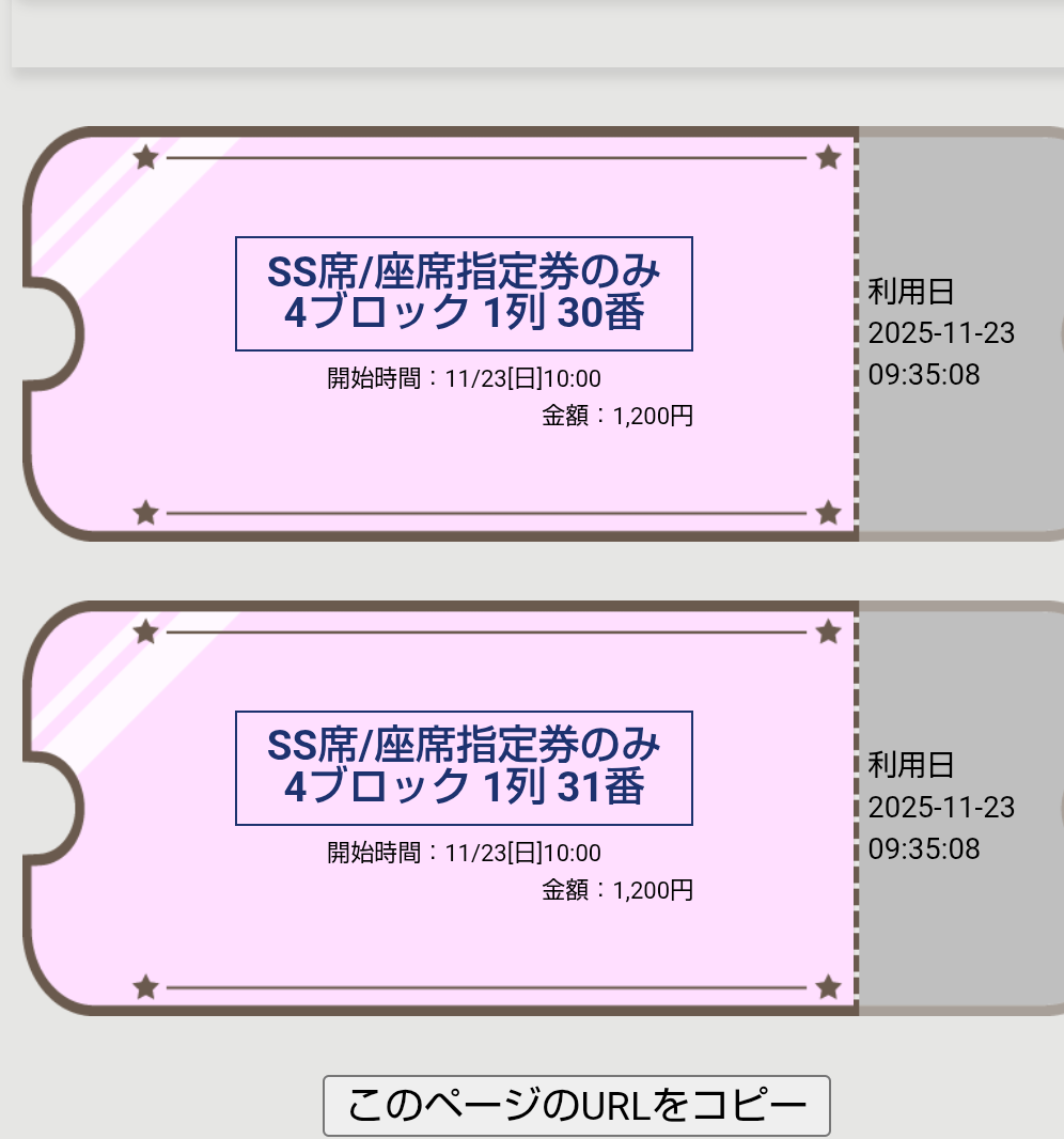 ↓ ピンクのチケットの右端が切り取られた状態になりました。